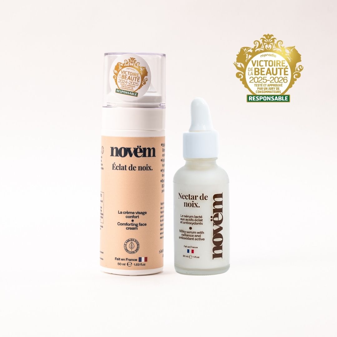 J’ai imaginé ce coffret Éclat pour offrir une routine simple, douce et vraiment efficace. Le sérum et la crème travaillent ensemble pour lisser, apaiser et illuminer, toujours avec notre ingrédient signature : l’huile de noix de Grenoble. C’est le rituel que j’utilise chaque matin, et celui que je recommande à toutes les peaux en quête d’éclat et de confort.