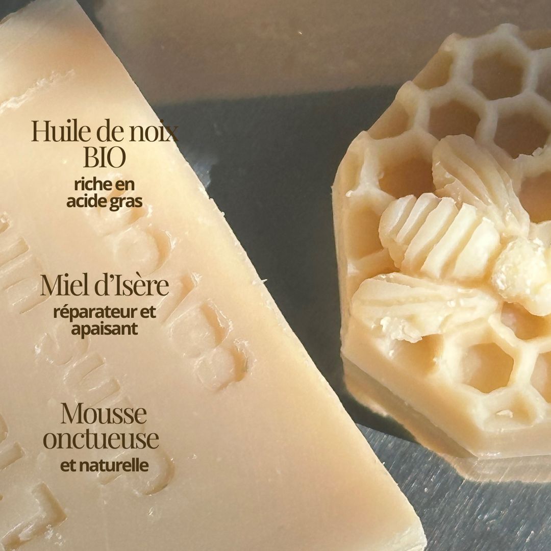 Savon solide nourrissant à l’huile de noix BIO & miel Isérois - Peau Sensible