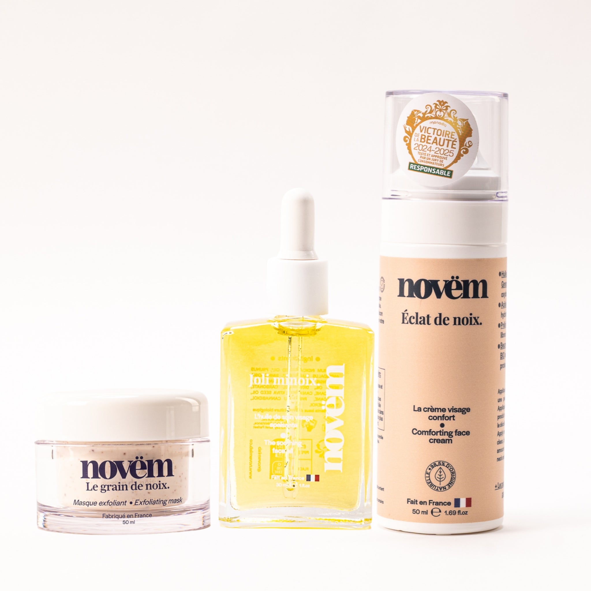 Nos produits mettent en avant la noix de Grenoble, reconnue pour ses vertus antioxydantes et régénérantes. Nous utilisons des ingrédients naturels, biologiques et issus de circuits courts.